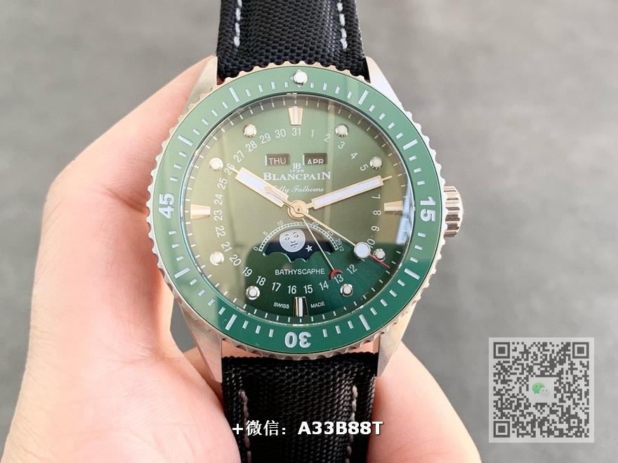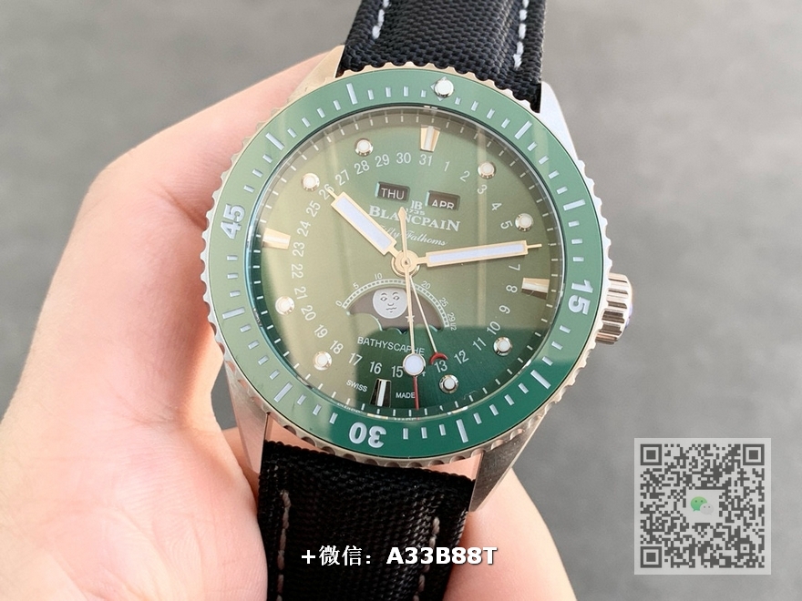【品牌】宝珀【产品介绍】TW厂手表力作宝铂五十寻系列,5054-1110-B52A。压轴巨献,大三针夜光设计,直径43毫米,厚度13.3毫米!搭载6654.P自动机械机芯,具备星期显示,日期显示。月份显示,年份显示,月相显示,壳身轮廓分明,线条清晰决绝。优雅、律动之下隐藏着刚毅成熟的美。满足运动,商务,多功能性佩戴。定让君能依芯所向!TW诚意之作值得你拥有!【尺寸】43mmX13.3mm【表带】尼龙纤维表带,内侧牛皮【镜面】蓝宝石镜面【机芯】cal.6654机芯【防水】50米【配件】原装盒,说明书,质保卡,吊牌,香港机打发票【品质检测】保证所有手表实物拍摄,所见即所得 , 手表发货前都会有严格检查测试,确保您收到的手表无质量问题