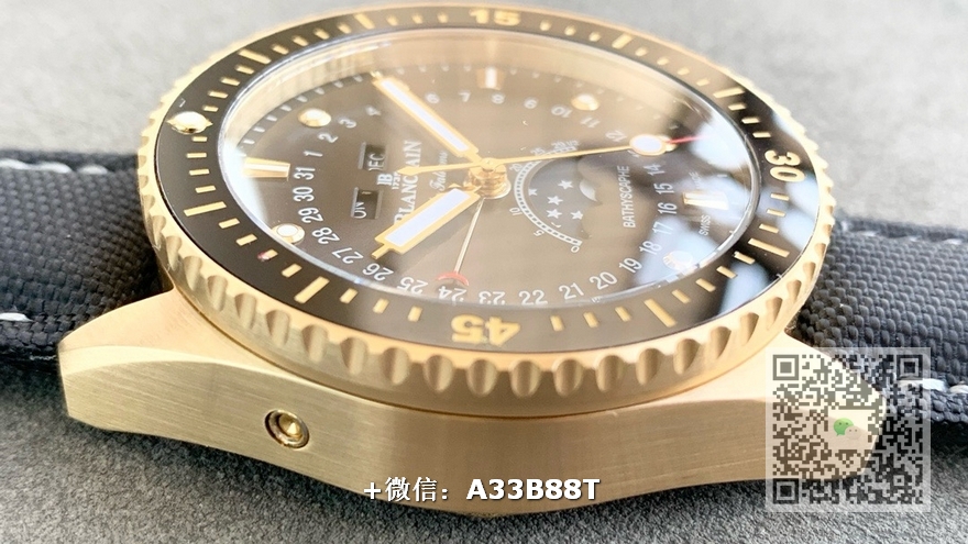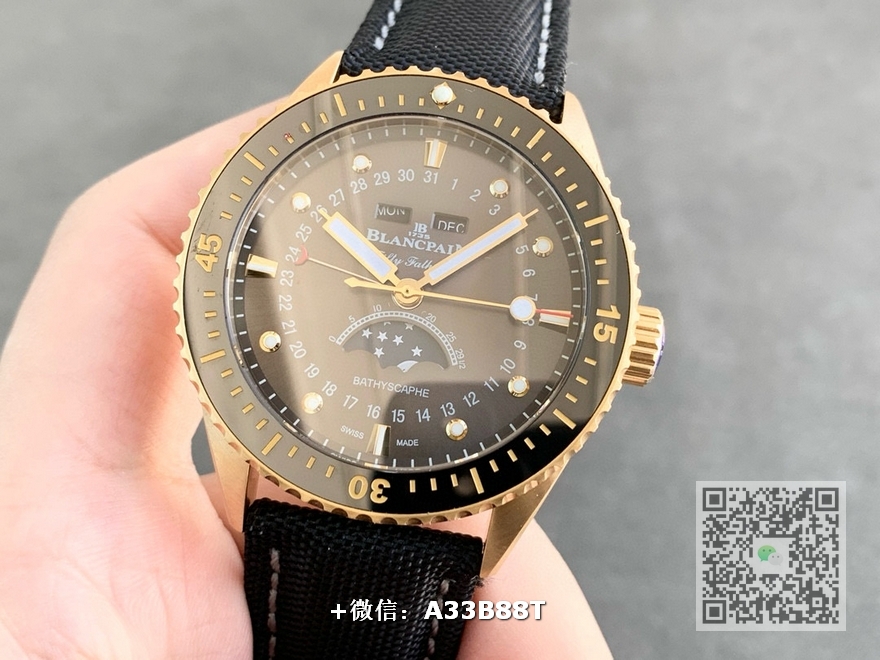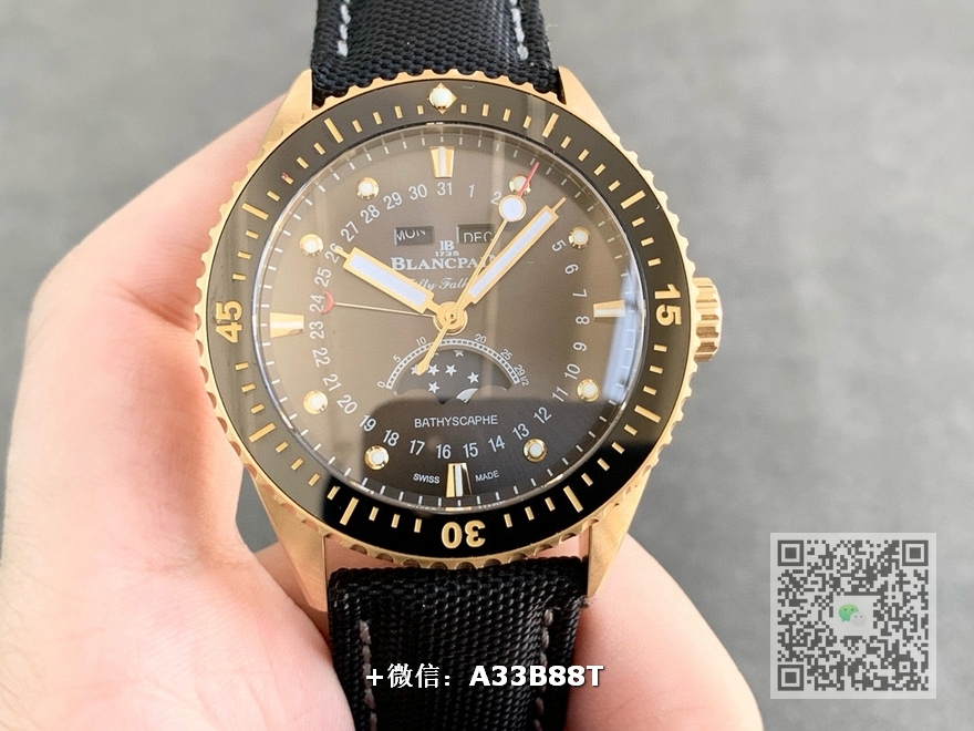 【品牌】宝珀【产品介绍】TW厂手表力作宝铂五十寻系列,5054-1110-B52A。压轴巨献,大三针夜光设计,直径43毫米,厚度13.3毫米!搭载6654.P自动机械机芯,具备星期显示,日期显示。月份显示,年份显示,月相显示,壳身轮廓分明,线条清晰决绝。优雅、律动之下隐藏着刚毅成熟的美。满足运动,商务,多功能性佩戴。定让君能依芯所向!TW诚意之作值得你拥有!【尺寸】43mmX13.3mm【表带】尼龙纤维表带,内侧牛皮【镜面】蓝宝石镜面【机芯】cal.6654机芯【防水】50米【配件】原装盒,说明书,质保卡,吊牌,香港机打发票【品质检测】保证所有手表实物拍摄,所见即所得 , 手表发货前都会有严格检查测试,确保您收到的手表无质量问题