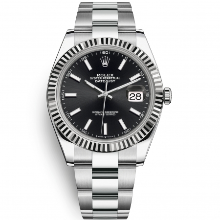 【表盘】独树一帜的中东数字刻度表盘,展现奢华与典雅风范。时分针上都覆有荧光填充,即使在较暗的环境下也能观察时间,增添了腕表的可读性。劳力士一贯使用的“水滴式”2.5倍日期放大装置,便利了对日期的观察,作为劳力士的特色之一的它也加深了腕表的品牌辨识度。