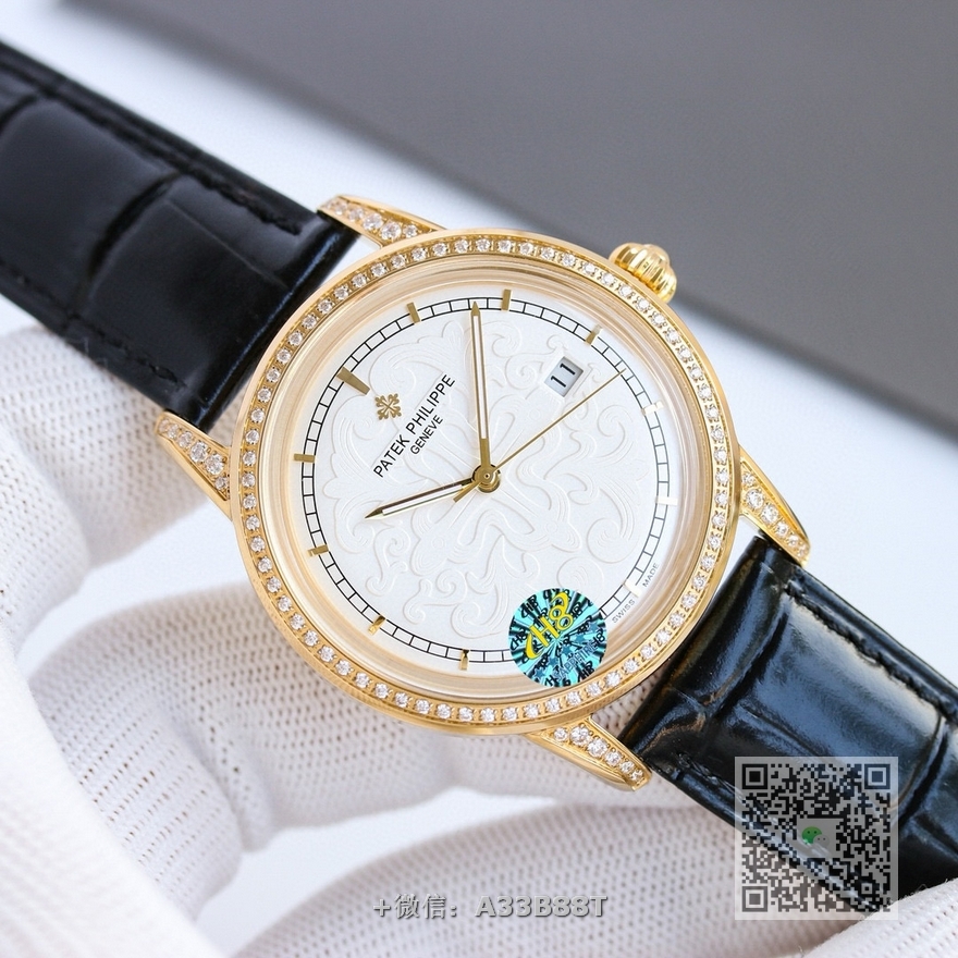 【品牌】百达翡丽【产品介绍】百达翡丽PATEKPHILIPPE,1851百达创始人安东尼推出古典系列腕表,便一鸣惊人,在伦敦世界博览会被英国维多利亚女皇选中,由此奠定了其贵族地位。为追求产品的高境界,百达翡丽鑫在材质选用上不惜工本。追求完美,将最好的腕表呈现给每一位消费者,此款腕表外壳采用国外三重轮廓工艺,先进的抛光技术,锅盖蓝宝水晶镜面,表盘采用力学压孤工艺技术更显棱线美感,手工雕刻表盘,做到真正的完美复刻!直径40mm x 9mm,30m防水,机芯:Calibre 9015,动能存储48小时,意大利牛皮,18k电镀工艺,古典系列腕表价格亲民,物超所值【款式】男款【尺寸】40mmx9mm【表带】意大利牛皮表带【镜面】蓝宝石镜面【机芯】9015机芯【防水】30米【配件】原装盒,说明书,质保卡,吊牌,香港机打发票【品质检测】保证所有手表实物拍摄,所见即所得 , 手表发货前都会有严格检查测试,确保您收到的手表无质量问题