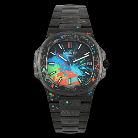 【产品介绍】【PATEK PHILIPPE  鹦鹉螺5711 DiW 】碳纤维的美学呈现,DiW赋予鹦鹉螺5711 腕表别样的风格。DiW作为知名的腕表改装品牌,以高端的碳纤维赋予腕表全新的视觉与触觉体验,进而吸引了众多爱好者的关注。鹦鹉螺5711腕表是DiW近期的代表作,这款腕表开创了复合材料进化的新纪元,因为它在美学上结合了高端碳纤维的轻盈感和陶瓷的的光滑度。该腕表表壳采用高端碳纤维制成,并融入了不锈钢元素,黑色的整体色调与不规则纹理造型,尽显别致观感。表盘搭配时标与指针,呈现出典雅与奢侈的质感。腕表后盖采用不锈钢材料进行黑色涂层制作,视觉观感非常统一。腕表搭配的表带特别震撼,也是碳纤维与不锈钢材料组合制成,碳纤维的纹理如云似烟,让人爱不释手。百达翡丽鹦鹉螺5711经DiW重新改造制作,个性前卫,时尚炫酷,非常适合追逐个性和潮流的年轻人们!