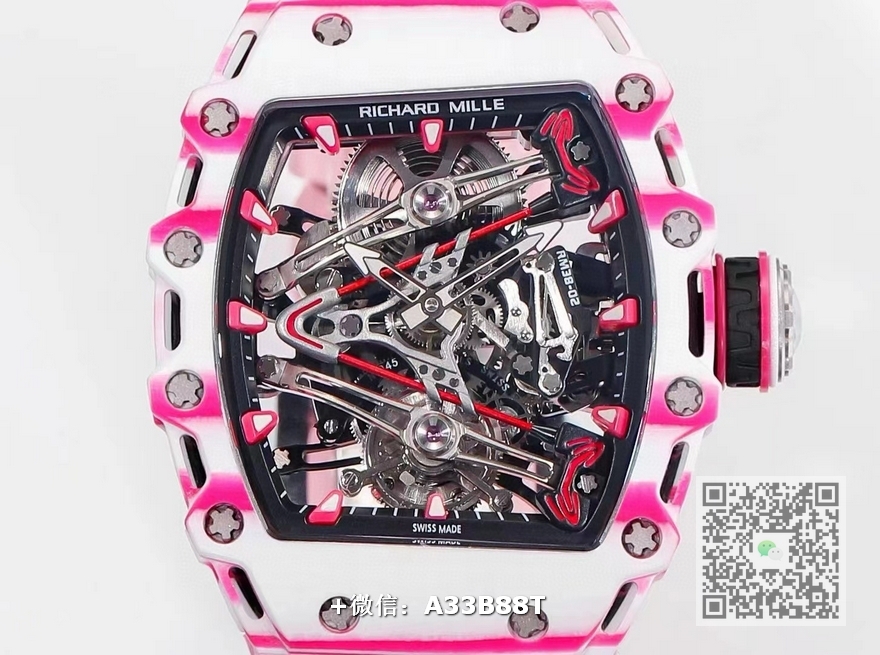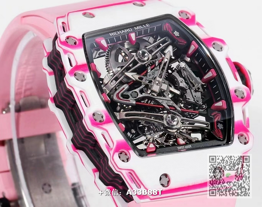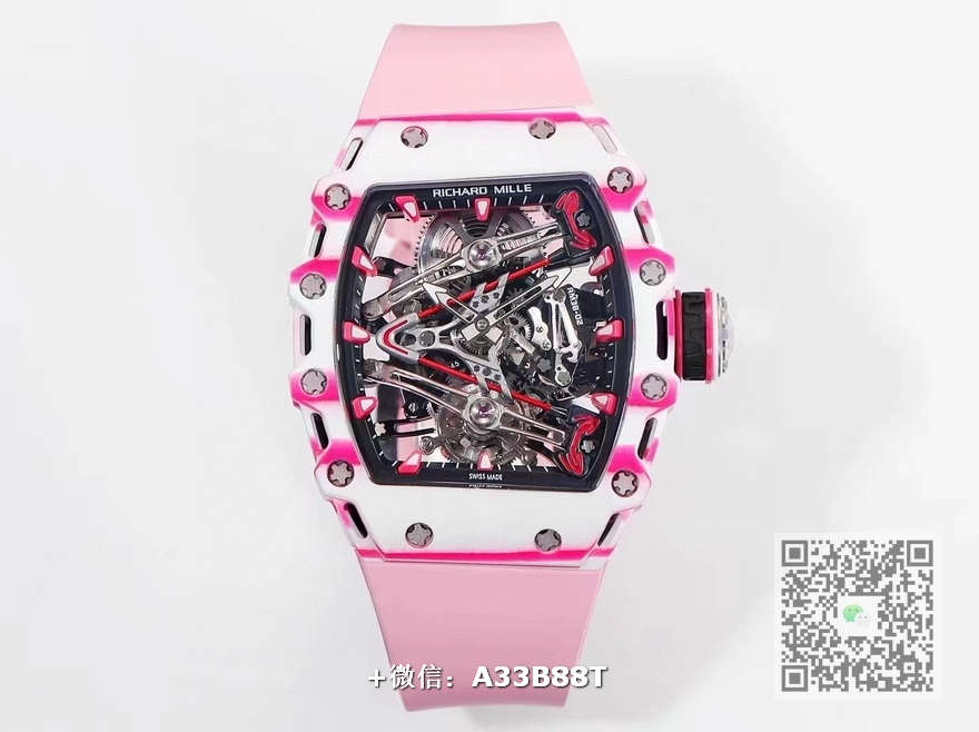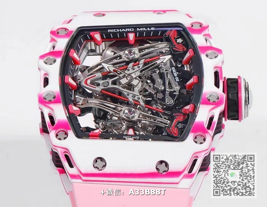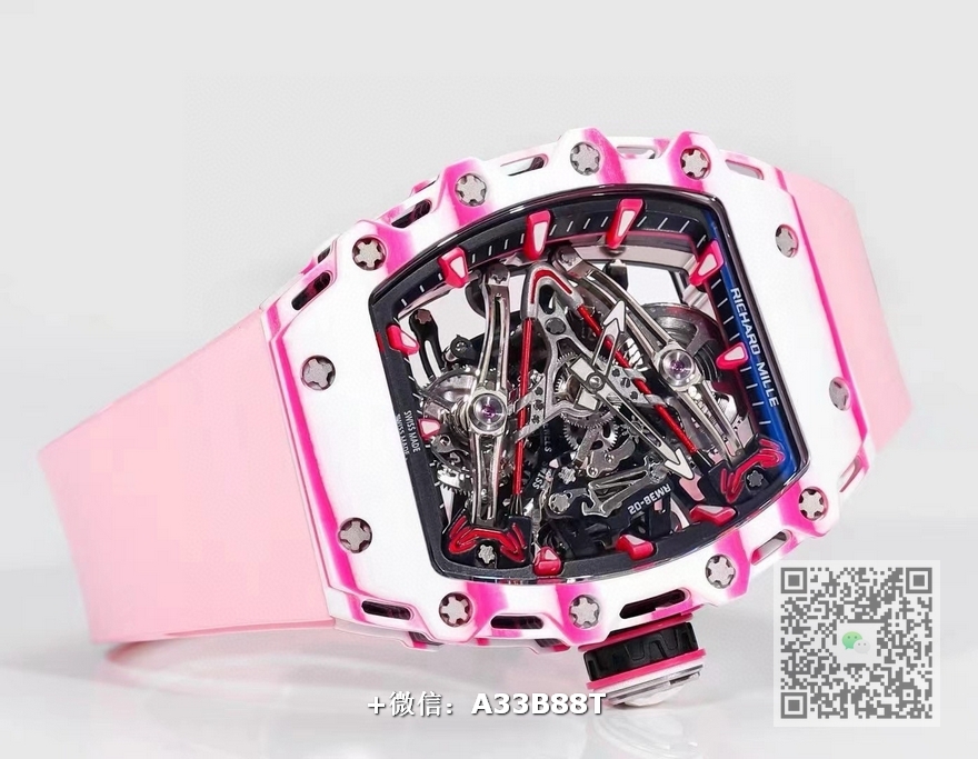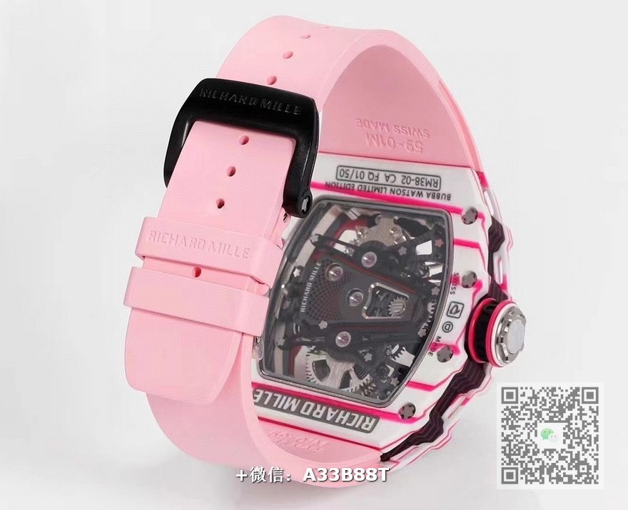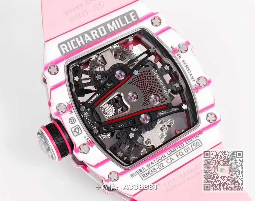 市场天花板 理查米尔男士系列RM38-02粉色主题镂空陀飞轮腕表 (陀飞轮腕表与高尔夫职业球手 Bubba Watson 合作设计)