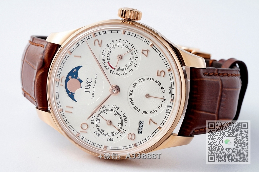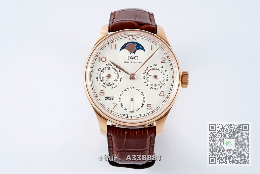 【品牌】万国【产品介绍】 APS新品 万国葡萄牙系列万年历腕表,复刻界最复杂的腕表,所有功能同步原装,所有功能调节通过把头控制【功能介绍】12点日月星辰,9点钟独立小秒针和星期指针显示,6点钟月份指针,同时联动7点钟位置的年份显示,每12个月年份跳动一下,3点钟则是最经典的动力显示指针和日期显示,每一根针都是真实可用区分市面上的小厂两根针粘在一起【做工精细】外壳采用原版同样的三件套结构,中间拉丝,上下壳为抛光,镜面采用高成本的锅盖形蓝宝石,使其质感提升【机芯性能】尺寸44.2mmX14.9mm,基础机芯采用葡七基础机芯,高效稳定,动力时间长达72小时以上,加装复杂的万年历模块,而且同步原装所有功能实现同步原装通过把头调节【品控QC】由于万年历模块十分复杂在出货前都会调准时间,客户收到直接上链上手佩戴即可,️不要轻易乱调,确实需要调节时,先把时间调到下午8点整再去调试其他功能,调试时先手动对准星期,拔出一节往上拧调节月份(12个月联动年份),往下拧三圈左右开始调节日历APS用心做表,从细节出发【款式】男款【尺寸】44.2mmx14.9mm【表带】牛皮表带【镜面】蓝宝石镜面【机芯】定制版52615机芯【防水】50米【配件】原装盒,说明书,质保卡,吊牌,香港机打发票【品质检测】保证所有手表实物拍摄,所见即所得 , 手表发货前都会有严格检查测试,确保您收到的手表无质量问题